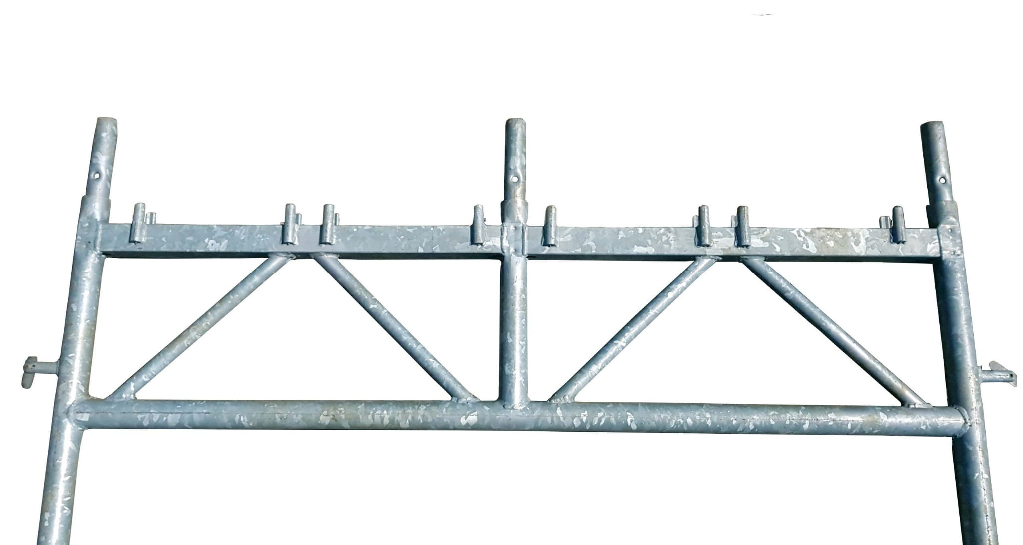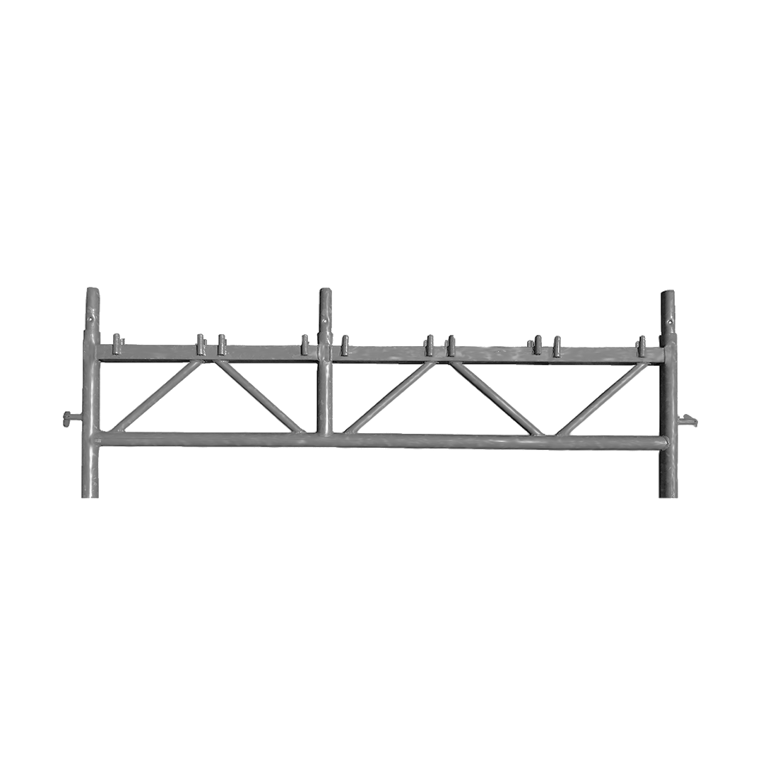 Der Rahmen ist so gebaut, dass Sie 5 Plattformen aufhängen können. Dies schützt Personen, die sich unter dem Gerüst bewegen, vor herabfallenden Materialien oder Werkzeugen. Der Rahmen hat einen größeren vertikalen und horizontalen Spielraum.